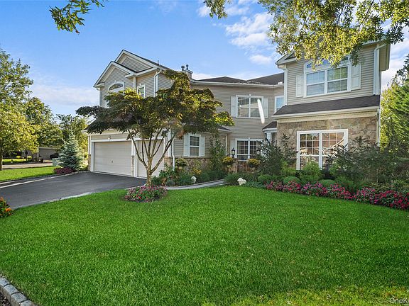 Perfectly positioned on a private corner lot overlooking the 8th hole of the Willow Creek Golf Course and a serene pond, this beautifully updated 5 bedroom, 3.5 bath residence offers 3,941 sq ft of refined comfort within The Hamlet, a prestigious private gated community in Mount Sinai. A grand two-story foyer opens to sun filled living spaces accented by rich cherry wood floors and timeless architectural details. The chef’s kitchen is a true showpiece, featuring brand new Quartz countertops, a designer mosaic backsplash, and professional grade Thermador appliances. The full basement serves as an expansive blank canvas, ideal for customizing additional living, entertaining, or recreation space tailored to your lifestyle. Step outside to a newly installed patio surrounded by lush landscaping, perfect for relaxing or hosting guests against the tranquil golf course backdrop.