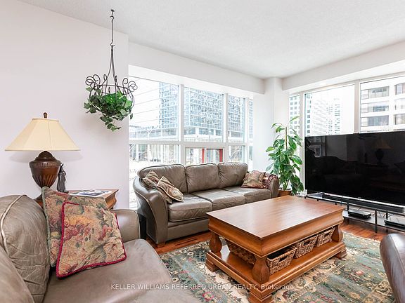 Enjoy the beautiful view of "Love Park" and avoid the elevator as you whisk down one set of stairs, and skip across to the covered PATH system in under a minute! All inclusive maintenance fees = no extra bills to pay. Forget the shoe boxes, this 2 bedroom, 2 bathroom Central Harbourfront condo has the SPACE you desire (1000 square feet!). The kitchen has been thoughtfully renovated with an extended island giving you additional counter space & storage. Chic stainless steel appliances. Parking & locker are conveniently located on the same floor. Number One York Quay is an established award-winning building perfect for an investor as suites rent out in a heartbeat. Minutes walk to the downtown financial core. Groceries, banking & all of life's conveniences are just steps away. Easy highway access as well.
