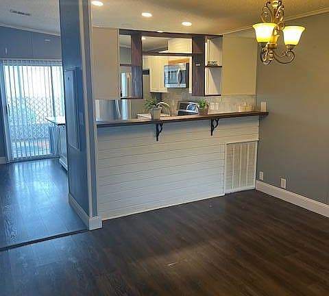 The home is totally updated with a new roof, A/C, laminate flooring throughout, a new kitchen, and baths! The open floor plan is perfect for entertaining family and friends, complete with a cozy fireplace! The kitchen has new cabinets, counters, stainless steel appliances, and a convenient center island with lots of storage! You have 2 good-sized bedrooms, including a master ensuite with a walk-in closet and private bath. You even have a screened-in lanai and outdoor patio to enjoy the wonderful weather of Florida! The sizable corner lot is well landscaped and has one of the lowest lot rents in the community! Absolutely adorable updated home in The Hamptons Golf and Country Club Resort of Auburndale! A gated, very active 55 +, top-ranked community in the heart of Polk County! So, enjoy this gem along with the beautiful facilities and activities this outstanding community has to offer. The golf course, pool & spa, restaurant, gym, library, poolroom, outdoor courts, ballroom for shows, games, banquets, bingo, and lots of dances with live entertainment! You can be as busy as you want to be every day and every night!! Don't pass this outstanding home!