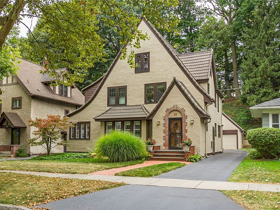 Welcome to 77 Highland Parkway, a meticulously maintained home in the heart of Rochester's coveted Ellwanger Barry-Highland Park Historic District. Steeped in character and architectural charm, this residence seamlessly blends timeless design such as original hardwood floors, leaded glass doors, built-in cabinetry, and a ventless gas burning fireplace, with modern updates and thoughtful amenities. The main living space includes unique first and second-floor enclosed sunrooms, which gives the home a bright, airy feel. Modern convenience is integrated throughout, from the central vacuum system with wall inlets on all four levels to the practical laundry chute connecting the first and second floors. The third floor features a finished space complete with a half bath, kept comfortable year-round with a variable speed duct booster fan, ensuring optimal heating and cooling. The list of high-quality upgrades is extensive, starting from the top with a stone-coated steel metal roof that comes with a 50-year transferable warranty, complemented by 5-inch half-round classic gutters. The exterior also boasts a beautiful deck with durable, low-maintenance Azek composite decking, overlooking a semi-private yard bursting with vibrant perennials. The 2-car garage provides ample space for vehicles and storage. Further enhancements include a new Square D QO electric panel box, a whole-house water filter, and a fully insulated structure with blown-in cellulose and closed-cell polyurethane for superior energy efficiency. The dry basement offers abundant storage, including an included safe and tool bench. As a member of the Highland Park Neighborhood Association (HPNA), you'll be part of a community that values its history and shared green spaces. This is more than just a house; it's a rare opportunity to own a piece of Rochester's history, perfectly updated for today's lifestyle.