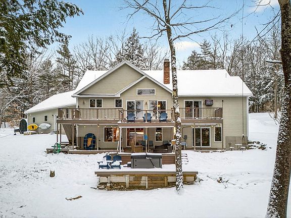 Your search stops here! This year-round waterfront home comes with an open concept kitchen/dining/living room with a butcher block island and granite countertops, vaulted ceilings, and sunset views on the deck overlooking Annabessacook Lake. Built in 2006, the property has 4.3 acres, 205 ft. of owned waterfrontage, and over 3200 square ft. The home features a first floor primary suite with a full bathroom and walk-in closet, along with separate access to the deck. A large family room in the lower level includes a woodstove to stay nice and cozy on the colder nights, and the ability to walk-out to the private terrace. The spacious mudroom upon entry features custom built-ins for storage, and radiant heat. A separate office space, first floor laundry room, an updated bathroom, and two additional bedrooms complete the first floor. The lower level provides opportunity for a guest bedroom or workout area, along with a third bathroom. There are additional sources of heating/cooling to include heat pumps, HWBB, and a pellet stove. A two-car attached garage provides easy access to the interior. The dock and hot tub are included as well. There is so much more to see here. Waterfront homes with this much privacy do not come on the market often!