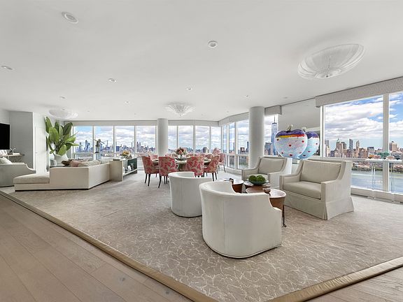 Introducing the epitome of luxury living! This exceptional combination penthouse situated atop the iconic Cetra Ruddy, 77 Hudson. The stunning glass curtain wall design provides unparalleled views of New York City, making it one of the most coveted locations in the world! This lavishly appointed 3,847 square foot home features 4 bedrooms, 4.5 bathrooms, and is meticulously designed with high-end finishes, including Sub-Zero, Miele, and Bosch appliances in two separate chef’s kitchens, elegant quartz countertops, luxurious spa-like baths adorned with Grecian and chiseled marble, custom California Closets, and Phillip Jeffries wallpaper throughout and an opulent dressing room that epitomizes the very definition of luxury. The Control 4 system offers smart home technology in every room, while Sonos speakers provide ambient music throughout, as well as one touch control of all lighting, climate and customized motorized window treatments. Upon entering, you'll be captivated by the expansive main living room with floor-to-ceiling, wall-to-wall glass, offering breathtaking 180 degree views from the George Washington Bridge to the tip of Manhattan. The home is thoughtfully designed to accommodate a separate living area, perfect for a nanny’s suite or visiting relatives, complete with a second living room and kitchen. 77 Hudson also offers a plethora of amenities, including a 3,000 sq. ft. gym, pool, hot tub, sauna, steam room, children’s playroom, theatre room, game room, virtual golf, party room, and more. This exceptional home embodies urban sophistication at its finest.
