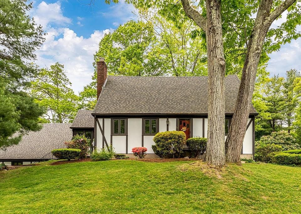 The Most unique house in Greenlodge! Enjoy the peace and tranquility in this hilltop English Tudor, Cape Cod style home with newly refinished hardwood floors; 2 bdrm, 1 bath; open kitchen/dining area with custom made cabinets and updated appliances; a large living room with fireplace and a cozy finished porch surrounded by windows providing a birds eye view of the neighborhood and ample sunshine. The large corner lot has plenty of yard space and a slate patio perfect for grilling or enjoying a fire pit in the evening! A Must See hidden gem with lots of potential for future expansion and several bonus areas including : an unfinished full size attic for additional bedrooms/ bath; a finished basement perfect for a home office, playroom or entertaining; and a two car garage with a full size loft above perfect for housing your favorite hobby, workshop or home gym. Only Minutes to the Dedham Schools, Legacy place (Shops and Restaurants), Commuter Rail, Golf course, and Major highways!