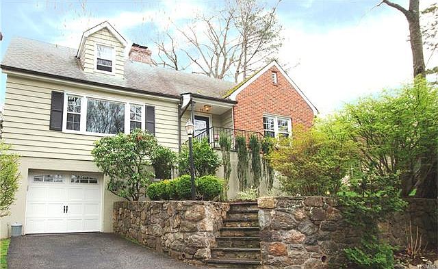Charm and Comfort! A wonderful opportunity to own a delightful, sun-drenched Cape style home, located in Larchmont Woods. This lovingly maintained home is superbly situated and provides treetop views. An aesthetically pleasing layout features open plan living/dining room with beautiful crown molding, recessed lighting, wonderfully placed built/ins, hardwood floors, and a cozy brick wood burning fireplace. The main floor offers a generously sized bedroom being used as a den as well as full bath and another bedroom. A newly updated bathroom, located on the second floor, is complimented by two generously sized bedrooms. Ample closets many with custom shelving makes tidying a breeze! Updated kitchen features granite counters and wood cabinets. This home has new windows through-out. You'll also love the new outdoor patio space, perfect for a summer barbecue and relaxing with family and friends. This home is move-in ready, just minutes to Larchmont train station for an easy commute!