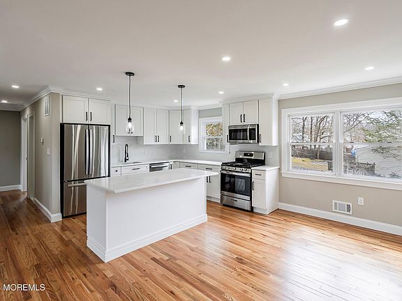 Welcome to this newly renovated, 4 bedroom 1.5 bathroom home located in the Sylvan Lakes section of Bayville, a highly sought after neighborhood, nestled on a quiet corner lot. The neighborhood is quiet and family oriented with curbs and sidewalks as well as multiple parks. Inside you will find brand new hard wood flooring throughout with an open kitchen and living room floor plan, perfect for entertaining or sitting down with family for dinner. The kitchen boasts excellent craftsmanship with a new center island, solid white cabinets, quartz counter tops and a stainless steel appliance package.
