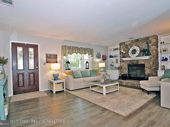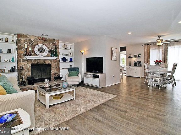 Summer lasts longer when you have a heated pool! This 3 bed/2 bath expanded ranch on an oversized lot in sought-after Barnegat Beach has something for every season. Cozy up to the fireplace in the living room, dining room is perfect for large gatherings, and open floor plan with eat in kitchen/family room open up to the beautiful back and side yards. Large pantry, laundry room and bonus room can be used as office space or guest room. Newer systems and roof, kitchen w/ Quartz and Stainless Steel, LVP flooring, etc. Rocking chair front porch and parking for all the toys. Optional HOA offers clubhouse, marina, and bay-side picnic/playground.
