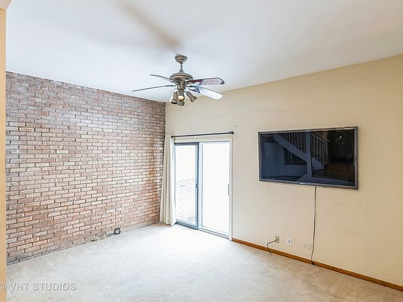 Resort living at its finest and just a few minutes walk to the the lake! Living in a community on the Chain O' Lakes in Fox Lake offers a unique and picturesque lifestyle surrounded by the beauty of nature and water. The Woodhills Bay Colony creates a tranquil and scenic environment for residents to enjoy. The open floor plan features a step-down living room, an eat-in kitchen, a generously sized dining room and beautiful exposed brick in most rooms. The flat screen, wall mounted TV and the dining room set can stay. The deck and patio can be accessed from both the dining room sliding doors, and the living room sliding doors; making access to the deck and patio very convenient. Relax in the large master with full bath, walk-in closet, and balcony. The community offers vacation living with a rentable clubhouse and pool, boat slips, boat launch, tennis courts and more! New exterior siding completed in 2023. No need to rush to work when the Metra train station is nearby. Entertainment, shopping, recreation activities, theaters, and a quaint downtown area offers you everything you could want. This townhome is rentable so investors are welcome.