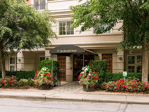 Welcome to 77 McMurrich Street - where Yorkville meets Rosedale in one of Toronto's most coveted enclaves. This 1,180 sq ft northwest corner suite is filled with natural light and offers a thoughtfully designed two-bedroom, two-bathroom split plan with spacious, open-concept principal rooms. The galley-style kitchen includes space for a breakfast table, a large picture window, with honey toned cabinetry and granite counter tops, while the generous foyer houses tucked-away laundry facilities and a 3-piece bath for added convenience. The primary suite features a spa like 6-piece ensuite creating a perfect retreat with marble and stone and a walk-in closet. Nine-foot ceilings and hardwood floors enhance the airy, elegant feel throughout. Walk out to your oversized balcony and enjoy the quiet tree lined street. Located in a refined New York-style brownstone 7 storey boutique building, this suite includes an owned parking spot and exclusive use locker. With a 24 hour concierge, visitor parking, guest suite, fitness centre, meeting room and a party room. Just steps to Yorkville's finest restaurants, shops, Ramsden Park and Rosedale TTC station, this is sophisticated city living at its best. A rare opportunity to own in a truly exceptional building and location.