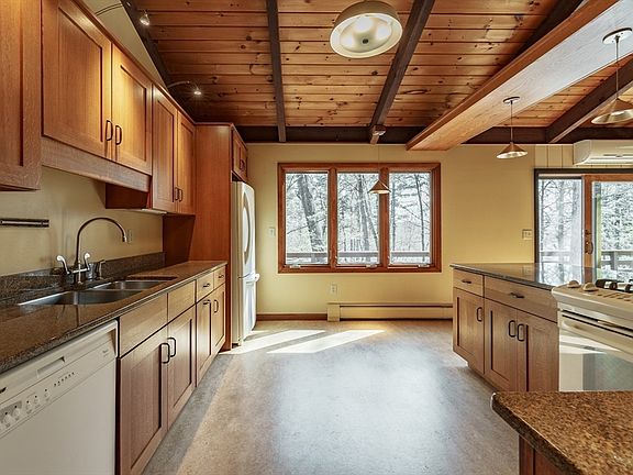 WELCOME to this fantastic spacious ranch with soaring ceilings in EVERY room on the main floor. There are so many sliders and windows you really feel like you're living in a treefort! At the heart of this open floor plan is a massive wood burning fireplace with access to the gorgeous, sprawling deck and screened porch. The kitchen and all three bathrooms have been beautifully updated, hardwood floors refinished, and so many of the big ticket items have been completed for you- so just move on in. The walk out basement has new bath, bedroom, and fireplace. The entire front yard is full of Rhododendrons- when in bloom are just breathtaking, and low/no maintenance otherwise. This location just can't be beat, UMASS Campus is just under 1.5 miles, iconic Cushman Market & Cafe is practically at the end of the street and Puffers Pond an Amherst gem is just under a mile away! ***Open Houses Saturday 5/4 and Sunday 5/4 from 2 - 4*** Don't miss this one!