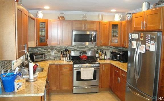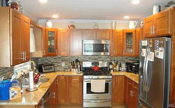 Move right into this fully renovated Ranch with Great Curb Appeal. Nice Corner Property on Beautiful Rye Brook Street. Features New Kitchen with Granite Counters and Stainless Steel Appliances, Livingroom with Fireplace, New Roof, New Windows, New Bathroom, Upgraded Electric, Refinished Floors, Surround Sound System, New Garage Door. Beautifully Landscaped Property with front and rear patios perfect for entertaining. The Lower Level has a great playroom perfect for watching movies, gym/office, storage. Must see to appreciate!
