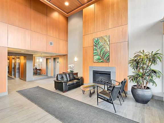 Open-concept layoutSleek kitchenRich cabinetryGranite countertopsStainless steel appliancesTile backsplashFloor-to-ceiling windows