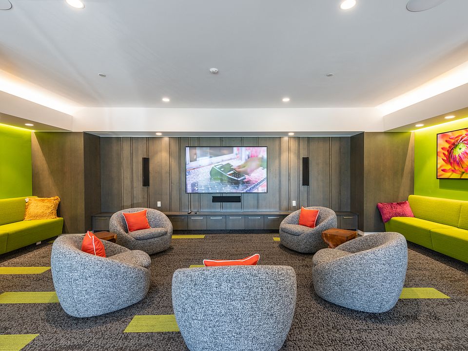 - Exterior features: Barbecue, Common cafe with full kitchen, Energy efficient LED lighting, Extra high ceilings in living rooms and bedrooms, FREE auto vacuum, FREE dog washing and grooming station, FREE electric car charging stations, Guest Room, High-speed Internet Ready, Keyless electronic locks at unit entries, Multimedia room with surround-sound system, On-Site Maintenance, On-Site Management, Oversized windows for light, bright interiors, Quartz countertops in kitchens and bathrooms, Short Term Lease, Spacious master closets, TV Lounge, Trash/recycling rooms on every floor