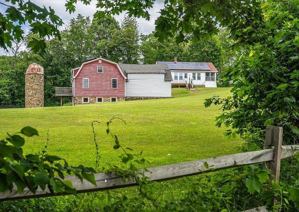 BOM! Buyer's Remorse is your gain! Open House Sat 11am-1pm. This property in North Brookfield, on 3.82 acres, offers so much more than “just a house”. The main 2-bedroom home exudes a charming retro aesthetic with features like a Beauty Queen metal sink cabinet, original hardwood flooring, and 3-Season porch. Recent upgrades include a composite deck, windows, and solar panels. On the lower level, you'll find a 1-car garage, a root cellar, and storage space. The barn has been transformed into a stunning studio-style apartment with cathedral ceilings and a full bathroom, providing picturesque views of the surrounding land and silo. The space below the apartment could be converted into a pool house, as it opens to the heated in-ground pool with a new liner. Additionally, there's a detached 4-bay workshop. Town water. Private septic system replaced approx 10 years ago, Passing Title V. Are you envisioning a home with a place for extended family, a home office, or even a small farm?