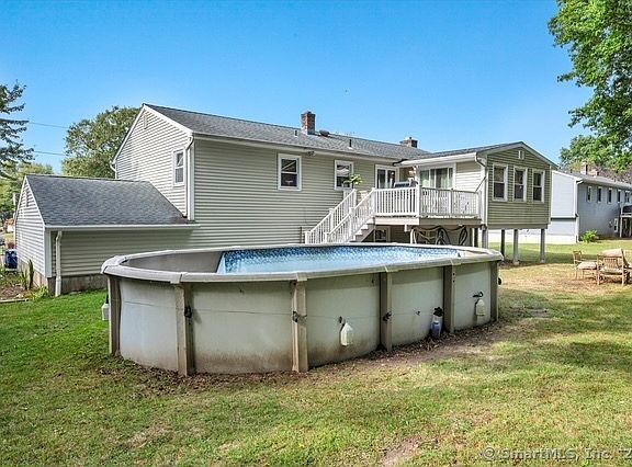 LOCATION! LOCATION! Beautifully renovated, shoreline home. Stunning open-floor plan in a desirable subdivision of Hubbard Farms. Facing southwest, enjoy your sunlit home, year round. A 1.5 mile/two minute drive to the Woodmont, Milford and West Haven public beaches. Three minutes to the new West Haven train station. Close to major universities, and hospitals, including Yale, Saint Raphael and the VA. Tweed airport is fifteen minutes away. Azek deck, large oval pool on a level lot. (New heater and liner in boxes) Roof installed in 2011, as well as vinyl siding. Curtain drains surround the exterior of the home to assure a dry interior. Nine rooms offer several options on how to use the space. The renovated kitchen features beautiful linen white cabinets with Bosch and Samsung stainless steel appliances. The breakfast bar and counters complete the look, with beautiful "blue persia" granite. Formal dining room area and living room with exceptional open floor plan make up the main floor. Top level has four spacious bedrooms and a renovated full bath with jetted tub. Great storage with an attic that runs the full length of the house with flooring. It can easily be converted into vaulted ceilings, or a recreation room. Lower level family room has two large radiant heated mats under imported porcelain tile flooring, a wood-burning fireplace, and half bath. Additionally, there is a fifth bedroom, or office and a large laundry utility room. 200amp service.