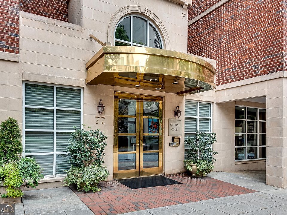 Light filled, stylish and spacious, with two generous bedrooms plus a separate office, this one truly checks all the boxes! Tucked away on a quiet street in the heart of Midtown, Cotting Court is one of those hidden gems, with attentive and welcoming 24/7 concierge service, closed circuit cameras and gated parking -- this is the epitome of a 'lock and leave' place to call home in Atlanta! Abundant natural light from floor to ceiling windows welcome you into an elegant and expansive place to call home. As you step inside, a gracious foyer ushers you in to serene and spacious living spaces, featuring a fireplace with custom built-ins and French doors that flow effortlessly to a generous terrace, ideal for everyday relaxation and entertaining. The dedicated office, tucked behind its own set of French doors, offers the quiet and privacy needed for working from home. The oversized primary suite serves as a tranquil retreat, complete with a spa-inspired bath and generous closet space. A spacious secondary bedroom and full guest bath are thoughtfully positioned for maximum privacy and comfort. Community amenities include a fully equipped fitness center and a saltwater, heated pool with ample lounge seating. The HOA dues are all inclusive, covering high-speed internet, basic cable (with HBO and Cinemax), gas, water, sewer, trash, exterior maintenance, landscaping, 24/7 concierge, and the reserve fund. Recent upgrades include new elevators and a recently replaced roof. Additional perks include secure, gated parking with two designated parking spaces. Just steps away from the very best of Midtown walk to dining, grocery stores, shopping, MARTA, the Fox Theatre, Piedmont Park, the High Museum- plus easy access to Buckhead, Downtown, I-75/85 and beyond.