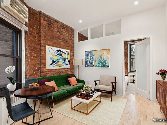 Natural light filters through the windows, offering serene views of the building's garden and leafy surroundings-an unexpected respite in the heart of the Village.