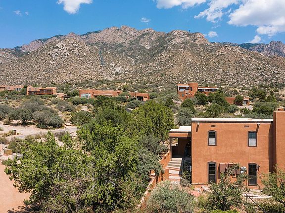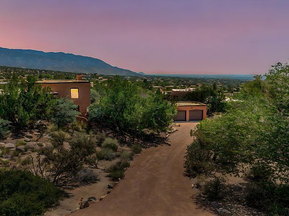 This Wonderful Sandia Heights Property is Nestled at the Base of the Majestic Sandia Mountains, Adjacent to the Cibola National Forest. The Home is Situated on Two Lots, Where You Can Take Full Advantage of the ''Land of Enchantment''. Stunning Sweeping Views of the Rio Grande Valley. The Incomparable Views of the Sandia Mountains Can't Be Matched. High Mountain Desert Living at Its Finest. Quick Access to Incredible Hiking Trails and Open Space, and Just Minutes to all the Conveniences of the City. Enjoy the Beautiful Southwestern Landscaping that Surrounds the Home. Interior features a Welcoming Entry Room, Spacious Living Area with Custom Fireplace, Open Kitchen, Bright Sunroom, and a Loft with Built-In Bookcases. Property Includes an Electric Solar System and an Oversized Garage.