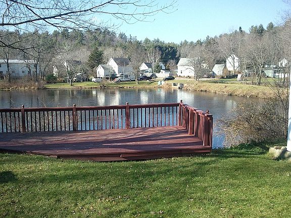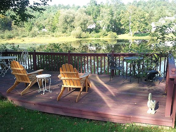 11/1/11-6/30/12, then month to month. Lovely Farmhouse that is on a pond. Perennials surround the yard with a new deck overlooking the pond. Many windows and skylights brighten the home. The kitchen is large and is open to the sun room/family room. 3 bedrooms upstairs with a 3/4 bath and another room for a office/den. Formal living room, dining room, laundry room, full bath and bedroom on the first floor. Wood floors throughout most of the house. Walking distance to the town center.