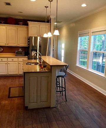 Canopied road leads to 4 bedroom home on over three acres in Thomas County. This home is nestled just outside of Boston on wooded acres and has a very large backyard fenced with solid four rail fencing. Owners have just purchased new Bosch dishwasher and large touch control glass cooktop. Kitchen has double ovens and a large island with quartz courtertops. Coordinating solid surface countertops elsewhere in this sunny kitchen with three windows overlooking the back yard. Large utility and laundry room with an additional sink and lots of shelves for pantry. Master bedroom has walk-in closet and bath with separate large shower and garden tub. Large family room opens to formal dining room and the kitchen, and also has windows overlooking back deck for grilling and entertaining. Owners installed new well with water softener and tankless electric hot water heaters in 2015.