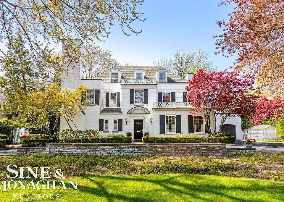 Stunning, custom home, built for the architect's daughter on an oversized lot. It has been beautifully maintained and updated and is just steps from Lakeshore. This historial gem, designed by renowned Detroit architect Robert O. Derrick, has charm and character and includes all the modern conveniences of today. The gracious entry hall features high ceilings and large windows. The generous family room, with walls of windows, brings the glorious outside in and overlooks fabulous grounds designed by Bill Whetstone of Greater Detroit Landscaping. The family room features a wet bar w/ beverage refrigerator, fireplace, skylights and opens to the dining room and living room for the “perfect” flow for entertaining. The gracious dining room has walnut paneling from England (from The Dexter Ferry Estate), decorative fireplace, Waterford chandelier, and French doors. The lovely living room connected to the family room allows your guests to flow into another space for entertaining. The pine-paneled library is the perfect oasis to relax by the fireplace, sip on libations serviced by a hidden wet bar and/or end the evening with a cozy book. The gracious 2nd floor offers a primary bedroom suite with a new luxury primary bathroom, complimented with built-in closets. There are 3 additional bedrooms w/ ample closets and 2 additional full updated bathrooms. The 3rd floor offers 2 bedrooms, full bath and cedar closet. The lower level has a recreation room for kids or workout space, loads of storage opportunities, laundry room, ½ bath, wine cellar and doorway outside for convenience. Grosse Pointe Shores offers residents only lakefront park with pool, pickleball, tennis, boat slips and picturesque picnic area. Generator hook up.