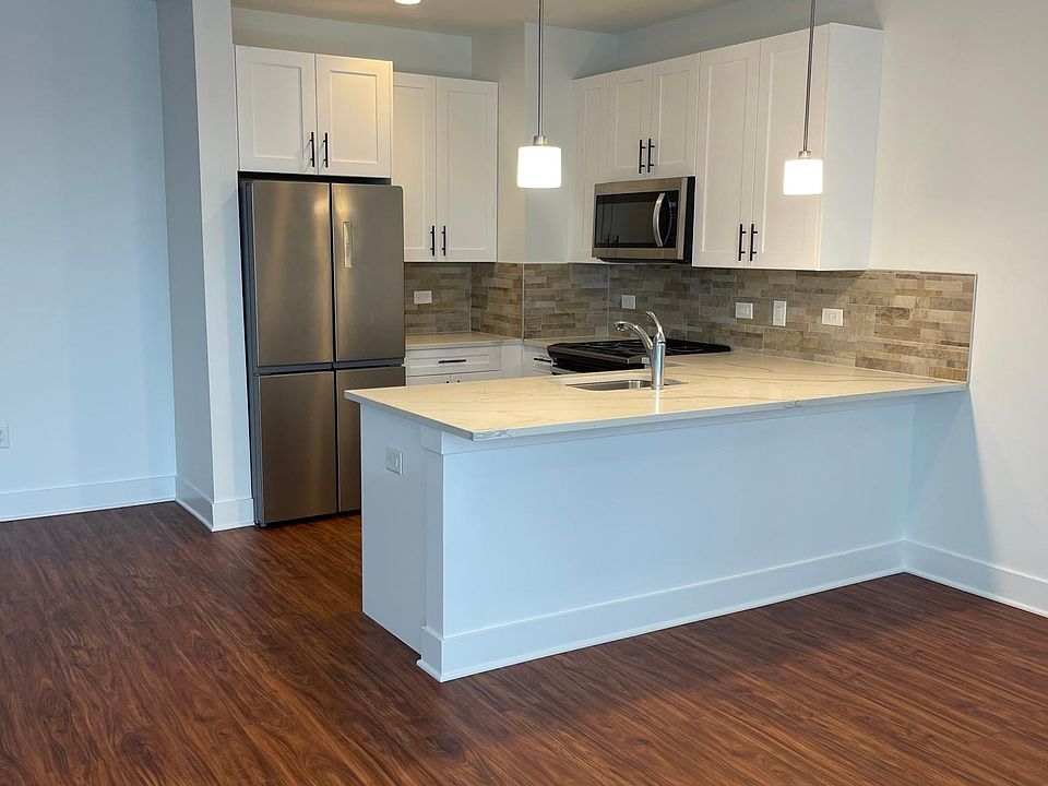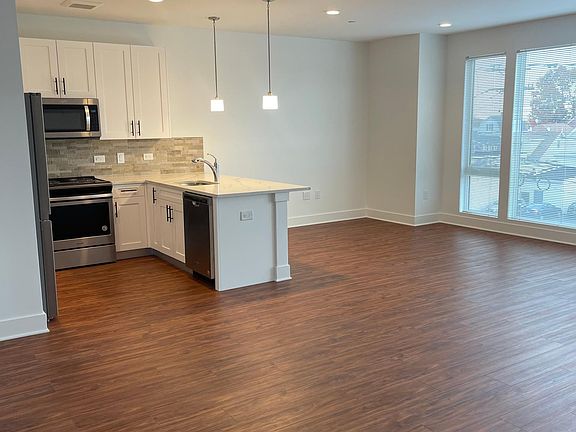 FOURTH FLOOR UNIT with CITY VIEWS Beautiful, spacious, new unit in the heart of North Arlington! This gorgeous 896sf unit features an open concept floor plan with a living room, dining area, kitchen with large breakfast bar, plenty of closet space, 1 bedroom, full bath with heated floors, in unit washer & dryer, recessed lighting, luxury vinyl floors, floor to ceiling windows, and two zone heating and cooling. This 5 story elevator building includes a fitness room and community room available for rent. Unassigned, outdoor parking spaces available at for $25/month. Assigned spaces available for $95-$125/month based on availability. 1 small (under 25 lb) pet welcome with $85/month pet rent. Credit report with 700+ credit required and income verification meeting 3x monthly rent. Tenant responsible for electric, water, cable and internet. Outdoor parking for 1 car available at $25 per month plus 1 time $50 application fee. Covered parking available for $125 per month based on availability. Application fee for up to 2 people is $195. 1 pet under 25lb welcome. Pet rent is $80/month. 700+ credit and 3x rent in monthly income required.