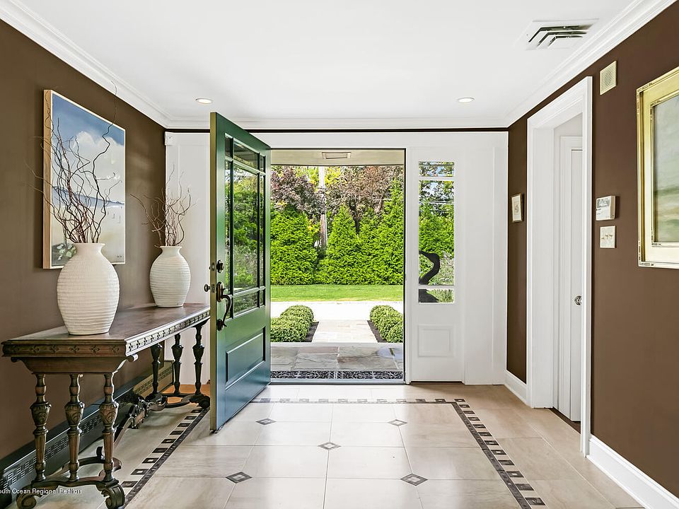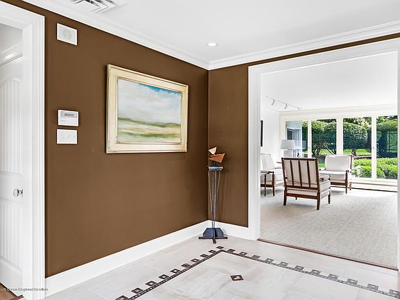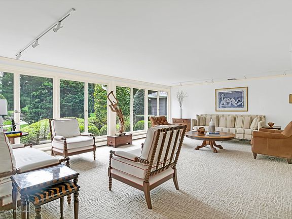 Set on a matured landscaped 1.5 acre property with room for a pool, this unique updated spacious ranch has so much to offer. The light filled marble foyer with 4' glass door and sidelights flows directly into wide open living room with its full wall of windows. A new 2020 designer kitchen with banquette, energy saving appliances, center island, quartz counters, wine cooler and bar sink for outdoor entertaining. Everyone loves a porch and this bluestone porch does not disappoint. Cozy family room with stone fireplace and custom cabinetry add to the living space. The master suite with french doors and private deck brings the outside in. The much needed office space is provided as well. Close to beach, shopping, schools and ferry to NY. 2020-10-16