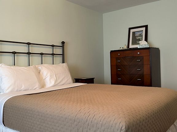 Fully furnished, including a brand new hybrid foam mattress. Furnishings can be removed before move-in upon tenants request (dining table & chairs, sofa, TV, queen beds, dressers, vanity, kitchen pots, pans, cutlery, silverware)