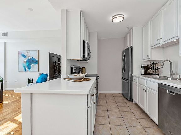Live in the heart of Downtown Arlington Heights in this bright and spacious 1-bedroom, 1.5-bath condo just steps from the Metra, restaurants, shopping, and nightlife. Located in the highly desired 77 S Evergreen building, this rarely available rental offers Eastern exposure with floor-to-ceiling windows that fill the living room and bedroom with natural light. The refreshed kitchen features white cabinetry, stainless steel appliances, and a functional layout with plenty of counter space. The bedroom includes dual custom closets with built-in organizers and a private ensuite bath. A separate half bath makes hosting guests easy and convenient. Enjoy the added comfort of in-unit laundry with full-size washer and dryer, heated garage parking (space #31), and a private storage locker. Rent also includes heat, water, cable, internet, and building amenities - tenant only pays electric. Building perks include a doorperson, fitness center, and party room, plus secure elevator access and professionally managed common areas. Perfect for commuters, remote workers, or anyone who wants walkable convenience and a low-maintenance lifestyle in one of the most vibrant northwest suburban downtowns.