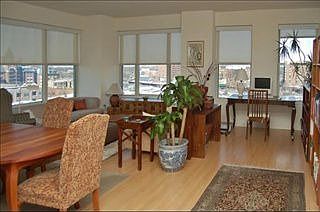 Gorgeous!! Light & bright - Panoramic views - Spectacular Sunsets. Spacious floor plan w/9ft ceilings and hardwood floors. Gourmet kitchen w/granite counter tops & GE Profile appliances. New in-unit washer and dryer. Huge closets. Walk to near by parks, shopping, dining, theaters, Starbucks & Metra. Short drive to I90. Deeded indor/heated parking.