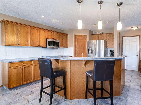 Modern curb appealTile and hardwood flooringAbundance of natural lightWell-equipped kitchenCorner pantryIsland with breakfast barDeck with backyard views
