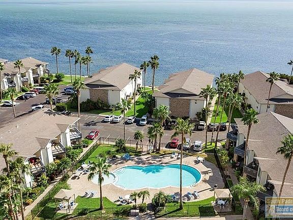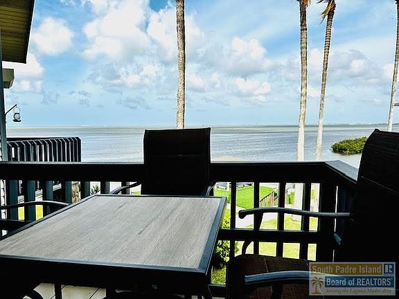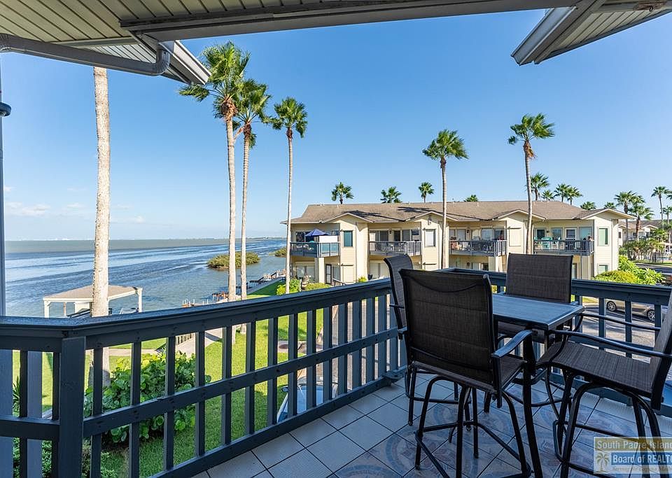 One-of-a-kind bayfront condo in a highly desirable location with breathtaking views of the Laguna Madre Bay, South Padre Island, & the Causeway. One of only a few units offering this kind of view, this condo stands out with a remodeled primary bathroom and thoughtful updates throughout. Enjoy the coastal breeze and your favorite beverage from the private balcony at any time of day—the view is always stunning. Interior features include beautiful Saltillo tile floors, stainless steel appliances, roll-out kitchen drawers, ample cabinet space, a smart thermostat, and a water softener. The primary suite offers a walk-in closet & custom barn door. Full-size washer/dryer, ceiling fans, & hurricane shutters (including balcony door) add comfort and convenience. Located in a gated community with a heated pool, common boat slip, fish cleaning station, & on-site management. Short drive to SPI beaches, shopping, dining, & entertainment. Don't wait—this rare coastal gem won't last long.