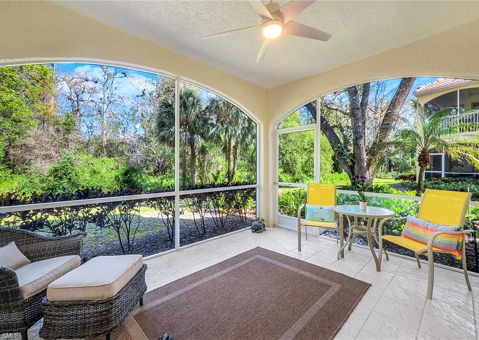 Desirable First-Floor, End-Unit Condo in Vineyards – Updated, Turnkey, and Move-In Ready! The ideal home you've been searching for has arrived! This beautifully updated FIRST-FLOOR, 2-Bedroom + OPEN DEN condo with a GARAGE checks all the boxes. Featuring elegant wood flooring (no carpeting), a refreshed kitchen with stainless steel LG appliances, and an upgraded primary bath with new quartz vanity, wood cabinetry, and a spacious walk-in shower. This home is the perfect blend of style and comfort with clean/fresh coastal decor and a split-bedroom floor plan for guest privacy. Enjoy your morning coffee with a scenic view, on your lovely, screened lanai where you'll see and hear several species of birds daily. Abundant natural sunlight brightens your unit throughout the day, and this floorplan offers a great Open-Den option for remote work, additional guests, and extra entertainment space. Offered turnkey furnished; there are no projects to complete. You can start enjoying your tastefully designed home with peaceful preserve views, within an amazing golf course community on Day 1. Ideally located just steps from the Silver Oaks community pool & spa and a short bike ride to the Vineyards’ resort-style amenities, this home offers both tranquility and convenience. The esteemed Vineyards Country Club offers optional membership levels, GOLF MEMBERSHIPS AVAILABLE, tennis, pickleball, a resort style pool, a state-of-the-art fitness center, a full-service spa, multiple dining options, and a vibrant social calendar. Plus, you're just 10 minutes from Clam Pass Beach, featuring a waterfront restaurant and scenic boardwalk, and you have nearby Mercato and Galleria Shops for dining/shopping, as well as close medical services with Physicians Regional Clinic. This gently lived-in, meticulously cared-for condo is truly a hidden gem in the heart of Naples, Florida. Don’t miss this opportunity—schedule your showing today! See tour links for a video walkthrough experience.