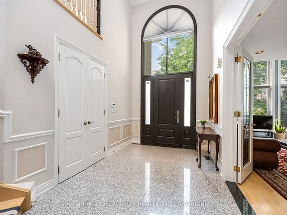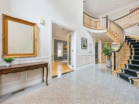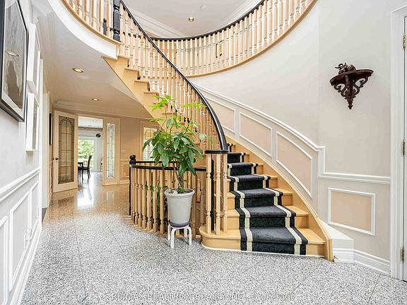 Stately 5-Bedroom Executive Home on Rare Ravine Lot in Prestigious Thornhill. This is an exceptional opportunity to own a custom-built luxury residence in the heart of prestigious Thornhill, nestled on one of the deepest ravine lots in the neighborhood. Set on a premium 52.23ftx305.47ft lot, this magnificent home offers approximately 6,000sqft of total living space, combining elegance, functionality, and unmatched natural surroundings. Backing onto a private wooded ravine, this home offers the ultimate in tranquility and privacy a true retreat from the city, yet minutes to top schools, shopping, golf, and major commuter routes. Step inside to a grand, light-filled interior, highlighted by a stunning central spiral staircase with a soaring skylight above, bathing the home in natural light and creating a warm, airy atmosphere throughout. The main floor boasts a thoughtfully designed layout with dedicated home office, perfect for working professionals or families needing additional study space rooms, including a formal living and dining area, a cozy family room with a gas fireplace, and a spacious eat-in kitchen ready for your dream redesign. Upstairs, you'll find 5 generously sized bedrooms, ideal for large or multigenerational families. The primary suite features a luxurious ensuite & peaceful views of the treetops beyond. The fully finished walk-up basement is a standout feature ideal for entertaining or extended family with a second gas fireplace, ample recreation space, storage, and direct access to the backyard. In the backyard, there is endless potential to add a pool, outdoor kitchen, garden suite, or simply enjoy the natural forest backdrop year-round. Home is in a high-ranked school zone from Elementary to Secondary. Future North Yong Subway Extension nearby, easy access to public transit, groceries, community centre and more. This is an unparalleled opportunity to secure a true legacy property in one of Thornhill's most exclusive ravine communities.