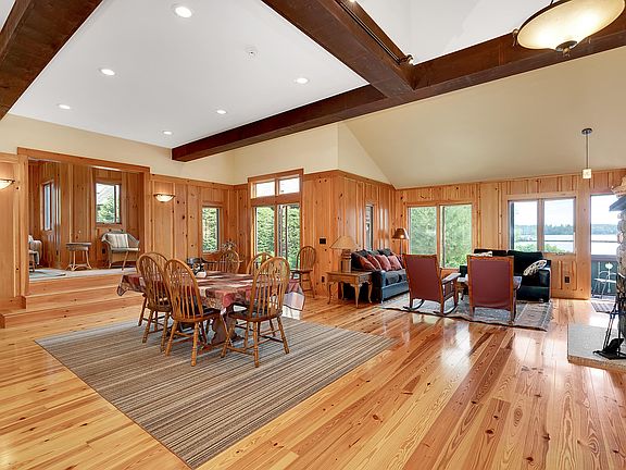 Come to Kezar Lake in western Maine to be enchanted by one of New England's most beautiful lakes. Enjoy a private 50 acre lakeside resort style community nestled in the foothills of the White Mountain National Forest. Rejuvenate with panoramic uninterrupted lake and mountain views from your living room, lawn or screened porch. All that separates you from the water is a mulch path and a manicured lawn. You can't get any closer to the lake than this! Delegate your home maintenance to full time year round management and staff. Hassle free, headache free: monitored security system, snow removal and plowing, road and grounds care, trash pickup, mail and package delivery. Embrace the liberating lifestyle, privacy and serenity of Kezar Lake while staying internet connected. Delight in large open concept spaces. This new architecturally designed contemporary craftsman style 4 bedroom, 3 1/2 bathroom home is cottage elegance: Carlisle wide plank wood floors, hand-crafted custom wood walls, granite counter tops and cherry cabinets in kitchen and baths, premium lighting and plumbing fixtures. High timber beamed ceilings and a field stone fireplace add to the charm. A master bedroom with private full bath is located on the first floor. Radiant heat and double insulated low E windows create a four season retreat for a vacation or primary residence. Escape the chaos of city life and swim at two sandy beaches; launch your boat, kayak or SUP from the docks; play basketball, tennis, or shuffleboard. Store your beach toys, bicycles and skis in the Carriage House private storage area or in the 500 square foot stand-up floored attic above your home. Relax in your lakeside Adirondack chairs and marvel at mountain sunsets, the Milky Way, or the resident loons. Dine at the gourmet restaurant. Live and love the luxury lifestyle at Kezar Lake in Lovell, Maine.
