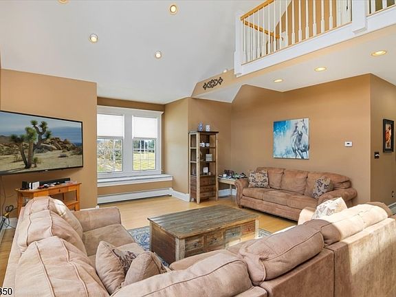 Unique & impressive authentic dairy barn converted to versatile living space offering oversized rooms for comfortable living & entertaining space throughout.. This amazing 4 beds, 4/1 bath home offers abundant flex space includes 11+ scenic acres with horse facilities, walk-in shed, chicken coupe, pastures & pool. This one-of-a-kind property incorporates a grand 2 story entry, main level w/spacious kitchen, abundant shaker style Hickory cabinetry, oversized granite island & breakfast area w/access to deck & great room w/vaulted ceiling, custom windows & stone wall wood burning FP & custom windows, formal DR boasts full wall built-in sideboard cabinetry, 2 BR's, beautiful custom tile bath w/shower plus dual sinks, additional laundry & pantry area & powder room, sweeping butterfly staircase leads to the second story offering 2 on-suite BR's, one with balcony & French doors, overlooking great room. Ground level features in-law suite potential that offers office, oversized game room, kitchenette, full bath, storage room & utility rooms & garage access to house. Gorgeous acreage incorporates 6 stall horse barn w/tack room & loft, water & electric, surrounded by fenced pastures, run-in shed, above ground pool & Trex style deck to enjoy private, peaceful views. Additional features. HW floors, window seats, recessed lighting, ceiling fans, skylight, multi zone HWBB heat, 2 unit CAC & so much more! Farm Assessed! Convenient location with easy access to Rt 80 & 94.. Not to be missed!