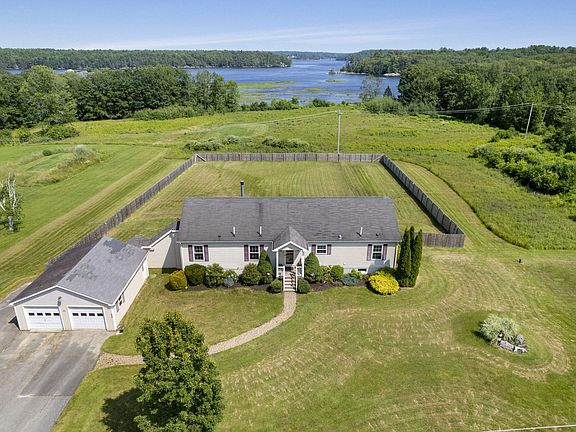 Welcome Home to 77 Varney Mill Road. This Ranch style home features open concept single floor living situated on 1.90 acres with views of the Kennebec River. Including 3 full bedrooms with an office, 2 full bathrooms and a 2 car garage. Enter through the front door and be greeted by a bright kitchen featuring many new updates: GE black slate appliances, a black quartz kitchen sink and Brazilian quartzite countertops. Pantry off of the kitchen including washer and dryer. Core-Tek luxury vinyl plank flooring throughout and into the dining and living space with new Harvey windows throughout the house, a wood burning fireplace and expansive water views. Double doors greet you out onto the massive deck with a new retractable awning. Primary bedroom ensuite with new extra large tile shower with glass doors. Off of the living room is the office with charming barn doors. Through the hallway and to the 2nd and 3rd bedrooms and additional full bathroom with tub. Head downstairs to the walkout basement that is fully finished, bright and spacious and even includes a Finnleo two person infrared sauna. Walk out through the doors and into the spacious fenced in yard and soak in the tranquility and peace that is offered on this lot. Other new features include a new 22KW Generac whole house generator, four Fujitsu heat pumps, 6ft fencing in the backyard, enclosed walkway from the garage to the house. The updates coupled with the views of the Kennebec River and its proximity to downtown Bath make this hidden gem a rare opportunity that awaits its new owners.