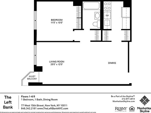 The Left Bank is an elevator building comprised of studios and 1 bedrooms accompanied by laundry facilities, a gym and an attended garage.
