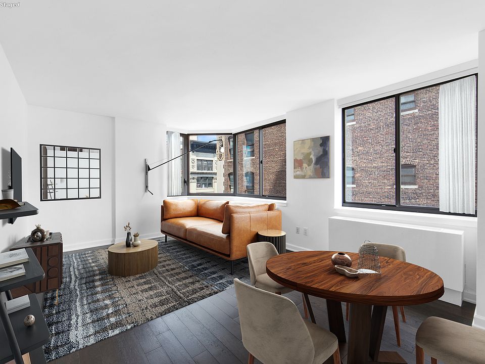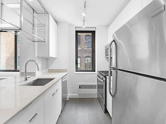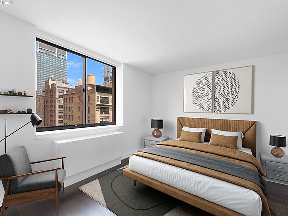 Welcome to Apartment 12J at The Vanguard Chelsea, a luxurious 1-bedroom unit boasting high-end finishes designed by the renowned COOK+FOX Architects. Step inside to find a newly renovated space featuring a pass-through kitchen with modern cabinetry, Caesarstone countertops, and a beautiful Ann Sacks ceramic backsplash. The bedroom includes a walk-in closet for ample storage, while the bathroom is adorned with Botticino marble and a custom vanity with LED lighting. As an LEED Gold-Certified building, sustainability is at the forefront of The Vanguard's design. Residents can enjoy a plethora of amenities, including a resident lounge, fully equipped gym, landscaped outdoor terrace with BBQ grills, pet grooming spa, and a children's playroom. With a 24-hour concierge and on-site valet parking, The Vanguard Chelsea offers an unparalleled level of service in the heart of New York City.