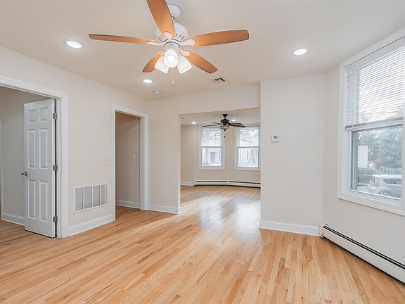 Discover this charming first-floor unit in a well-kept two-family home. The apartment features a welcoming front porch, hardwood floors throughout, a spacious living room and dining room, two comfortable bedrooms that easily fit queen-size beds, and one full bathroom. Shared access to the backyard offers additional outdoor space to enjoy, and optional off-street parking is available for $150/month. Conveniently located near NJ Transit bus routes and the Hudson-Bergen Light Rail, the home provides easy commuting to Jersey City, Hoboken, and Manhattan. The neighborhood offers nearby parks, local shops, restaurants, and everyday amenities, making this a comfortable and well-located place to call home.