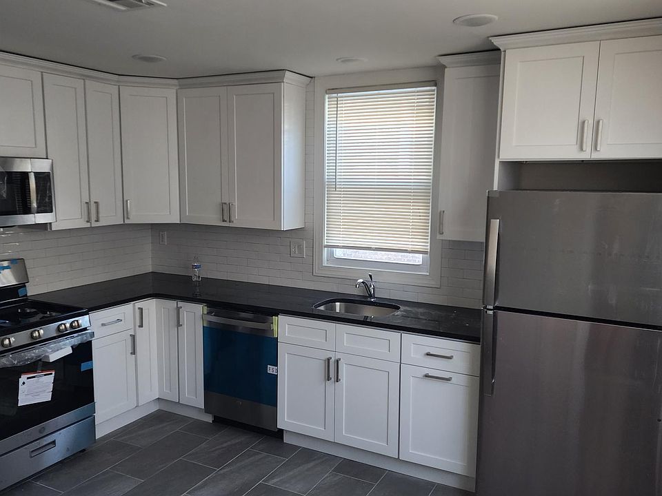 Newly renovated unit located on the first floor. Unit offer hard wood flooring throughout wonderfully designed eat-in-kitchen with all new appliances including dishwasher. Layout offer great bedrooms with large closets and also a large dining room and huge living room. Rental includes off street parking.