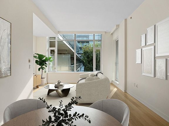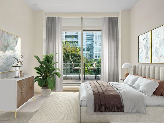 Spacious East-Facing 1-bedroom home at Kayak in Olympic Village designed with over-height 9’4 ceilings, geothermal heating and cooling, floor-to-ceiling windows, and engineered hardwood flooring. The kitchen is equipped with timeless Eggersmann German cabinetry, integrated Sub-Zero refrigerator, premium Miele appliances, gas cooktop, and an oversized sink. The spa-inspired bathroom features travertine tiles, a deep soaker tub, and sleek wall-mounted faucets. Residents enjoy access to Gold Medal Club facilities including an indoor pool & gym, along with all the vibrant amenities Olympic Village has to offer: London Drugs, Creekside Community Centre, plus an endless selection of cafés and restaurants just steps away.