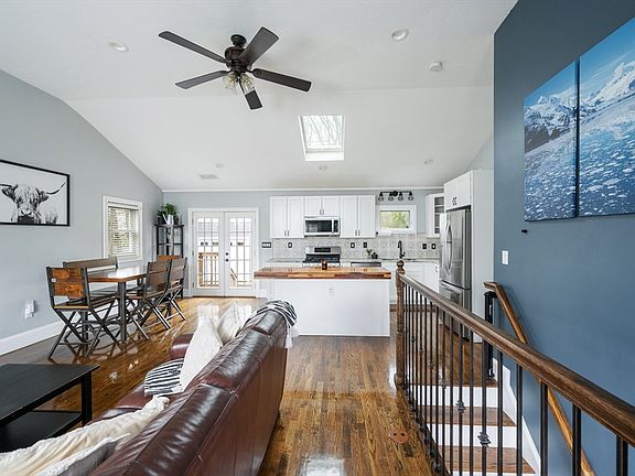 - Features: Skylight, Ceiling Fan(s), Vaulted Ceiling(s), Flooring - Hardwood, Countertops - Stone/Granite/Solid, Countertops - Upgraded, Kitchen Island, Cabinets - Upgraded, Open Floorplan, Recessed Lighting, Remodeled, Stainless Steel Appliances, Gas Stove, Lighting - Sconce