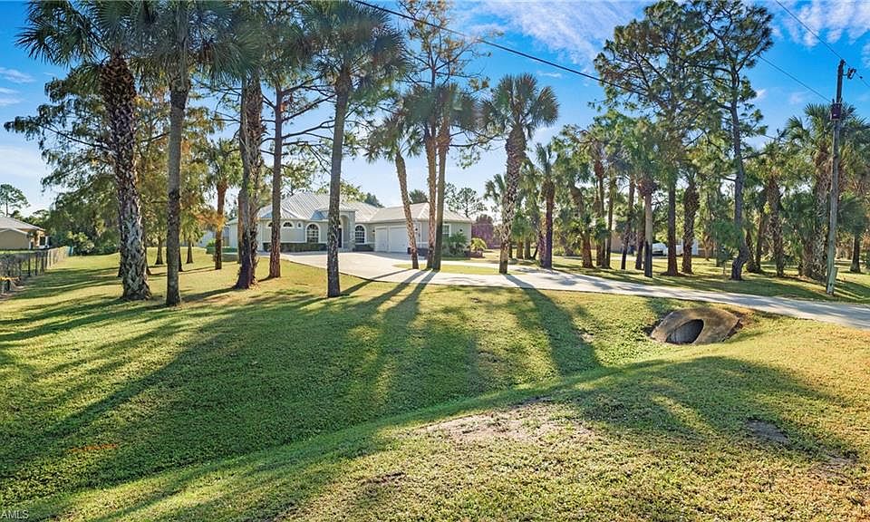 Beautifully updated estate home on 2.27 acres in one of the most desirable sections of Golden Gate Estates—just one lot off the canal for enhanced privacy and a peaceful backdrop. This spacious 4-bedroom, 2.5-bath home offers 2,504 sqft of living area, a 3-car garage, and an ideal split-bedroom floor plan filled with natural light. The property has undergone significant improvements inside and out. Major exterior upgrades include a brand new custom pool with an expansive sun deck, perfect for entertaining and enjoying the Florida lifestyle. Additional upgrades include a 2018 metal roof, modern stone entry, circular concrete driveway, updated exterior lighting, refreshed landscaping, and—new in 2022—a 40' x 40' concrete slab with footer plus a metal pole barn building, ideal for a workshop, equipment storage, RV/boat parking, or additional vehicles. Inside, the renovated kitchen features Silestone countertops, a center island, pull-out pantry drawers, and new stainless steel appliances. The home offers both formal and casual living areas, double tray ceilings, tile flooring throughout, French doors, and a fully updated spa-style primary bathroom. The large lanai and the brand new pool area overlook the expansive acreage, offering a private and open setting with room for a guest house, additional structures, or a full outdoor living expansion. Enjoy the freedom of Golden Gate Estates with no HOA and plenty of usable space for toys, animals, or future improvements. LOCATION & LIFESTYLE HIGHLIGHTS • Just 5–7 minutes to the brand-new Great Wolf Lodge Naples, one of Southwest Florida’s premier family indoor water-park resorts • Minutes to the Big Corkscrew Island Regional Park (water park, turf fields, playgrounds, fitness center, gym & more) • Close to Publix, Founders Square, restaurants, cafés, shopping, and medical offices • Fast access to Vanderbilt Beach Rd, Collier Blvd, and I-75 • Peaceful acreage living without giving up convenience • Highly desirable and quickly developing area of Golden Gate Estates