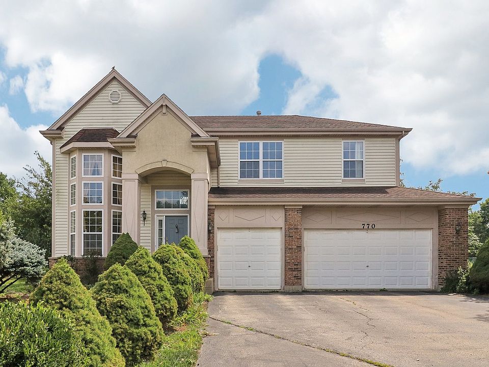 This stunning 5-bedroom, 3.5-bath home will impress you from the moment you enter the grand two-story foyer and living room, highlighted by floor-to-ceiling windows and a dazzling crystal chandelier. The kitchen, featuring a center island, double oven, abundant cabinet space, and a pantry, opens to a cozy family room with a fireplace, perfect for gatherings. Sliding glass doors lead to a beautiful paver patio for outdoor relaxation. First floor office/den. Upstairs, the primary bedroom is a true oasis, complete with an ensuite bathroom that offers a dual vanity, a separate soaking tub, and a shower. Three additional bedrooms share a well-appointed hall bath. The finished lower level provides plenty of space for entertainment and includes a fifth bedroom and a full bathroom. This one won't last! New furnace and A/C 2024.