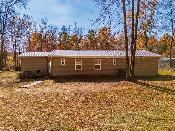 Manufactured ranch w/3bedrooms 1 full bath on 1.98 partially wooded acres. Wooded acreage is mainly hard wood trees in the rear of the home. Home is a manufactured doublewide built in 1992. Newer metal roof, Newer electric heat pump, wood stove. Country setting but easy access to town. County water.