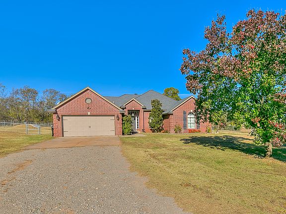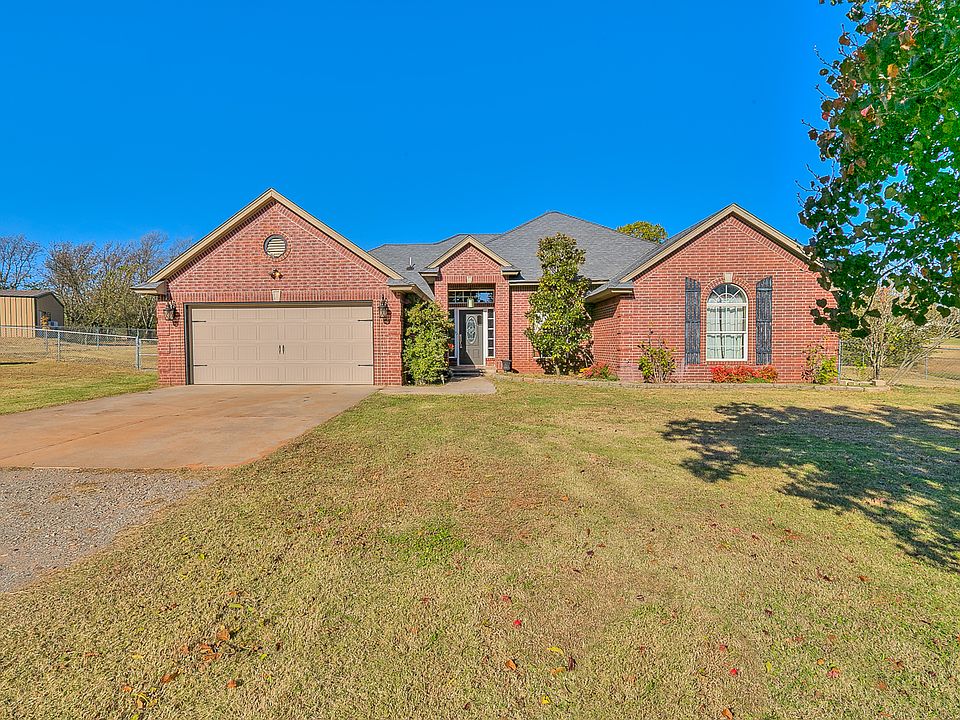 WOW!! This home has it all; 3.71 acres, pond, 30x40 shop, storm shelter, 2 livings, 2 dining!! Host all your gatherings here there is plenty of room for everyone with your formal dining, dinette, 2 livings, 3 1/2 baths & a patio!! Kitchen features distressed look painted cabinets, stainless steel appliances & granite counters! Home even has 2 master bedrooms- yes two!! Both with dbl vanities, jetted tubs, granite and Corian counters and walk in closets! Home was added onto in 2005 to add the second living and "HUGE" master bedroom (24x18!!), bath and closet. Additional rooms have jack-n-jill bathroom with granite; also a private study. Formal living room has a gas log fireplace & hardwood floors. Home also has a well and septic, water softener, and 7-8 person storm shelter. 30x40 shop is fully insulated, with private 1/2 bathroom, 100 amp service, 220 volt outlet, outlets on every wall, ceiling fans and a window unit. Really is a beautiful property, come see for yourself! Call Teri today to discuss financing and schedule your private tour! 405.410.9181