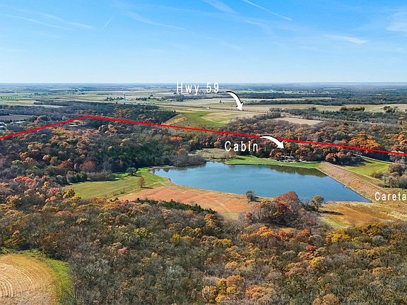 For the avid sportsman seeking the ultimate retreat, Sadie’s Lake offers an unparalleled experience across its stunning 290± acres. Perfect for hunting, fishing, and outdoor adventure, this one-of-a-kind property features a spacious cabin with 5 bedrooms, 3 bathrooms, and approximately 2,384 square feet of comfortable living space. At the heart of the retreat lies a remarkable 16± acre stocked lake, ideal for anglers chasing their next trophy catch or anyone looking to enjoy a peaceful day by the water. The diverse landscape is a sportsman’s dream, showcasing 170± acres of mixed warm- and cool-season grasses, along with mature timber that creates a thriving wildlife habitat. With approximately 30 acres of dry-land food plots, the property attracts abundant deer, turkey, and ducks, offering exceptional hunting opportunities throughout the seasons. In addition to the main cabin, a caretaker’s home sits on 5 acres and provides 3 bedrooms, 2 bathrooms, and 2,200 square feet of living space, along with outbuildings perfect for storing recreational vehicles and equipment. The property is located on a dead-end road for maximum privacy, yet remains exceptionally convenient—just 7 minutes from Lawrence, 15 minutes from KU, and 50 minutes or less from KCI Airport. With current rural tourism zoning, Sadie’s Lake also provides exciting business potential for outdoor recreation, lodging, or retreat-style ventures. Whether you're seeking quiet immersion in nature, thrilling hunting opportunities, or unforgettable gatherings with family and friends, Sadie’s Lake is a rare and extraordinary slice of paradise. Don’t miss your chance to make it your own!