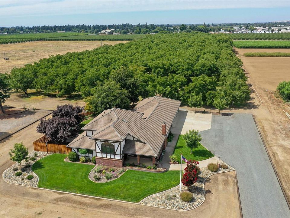 Welcome to this country-style property located in the city limits. Enjoy tremendous views of our cherished Sutter Buttes, Sierra Nevada Mountains and Pacific Coastal range. Conveniently located to nearby shopping and amenities, this property is a prime location for future development. There are eight acres of mature walnuts and this orchard has been featured for its beauty in several trade publications. This spacious turn-key home was designed for efficient flow and maximum storage. The open floor plan has a beamed ceiling in the Great Room, which opens to a large dining room and adjacent gourmet kitchen. The Master Suite has spacious closets and access to the covered patio. The Office/bedroom has double built-in desks and there are 2 bedrooms upstairs with a bonus room. Don't miss this once in a Lifetime Opportunity!