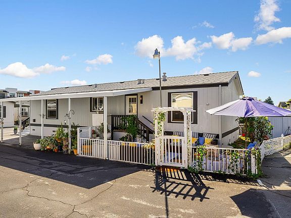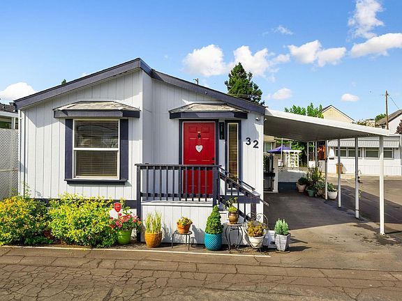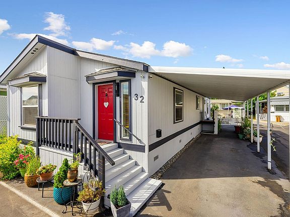 This stunning contemporary manufactured home in a vibrant 55+ Napa Valley community is truly exceptional inside and out. Built in 2000 and completely remodeled in 2022/2023 with thoughtful updates, it combines modern style with function in every detail. Meticulously maintained, the open-concept layout features high ceilings and expansive windows that flood the space with natural light. The roof was replaced in 2025, offering peace of mind for years to come. The kitchen has been beautifully updated with chef-inspired maple butcher block countertops, new cabinetry, Italian tile backsplash, water-resistant plank flooring and new stainless-steel appliances. The upgrades continue in the bathrooms with granite vanity tops, new sinks and faucets, and ceramic tile flooring. LG washer/dryer, designer lighting, and custom 3 Day Blinds complete the home. Outside, the attention to detail continues with a redesigned entertainment and patio area with a privacy fence, shed, refreshed landscaping and convenient carport lift. With upgraded finishes, new roof, dual-pane windows and central heat and air, this turnkey property is move-in ready. Perfectly located near Napa's best restaurants, wineries, shops, and recreation, this is a rare opportunity to enjoy stylish, carefree living in the Valley.