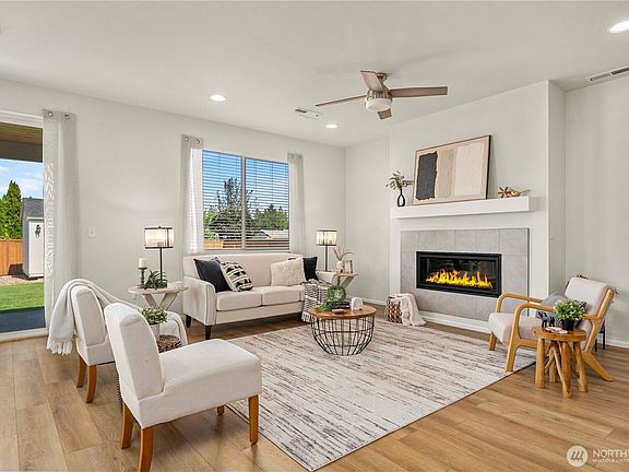 Welcome to this stunning ranch-style home built in 2022, offering an open layout w/ a spacious great room & cozy fireplace. The well-appointed kitchen boasts a center island, eating bar, stainless steel appliances & comfortable dining area. The private owner’s suite includes a spa-like bath w/ linen storage & an expansive walk-in closet, while 3 secondary bedrooms provide space for guests, hobbies, or a home office. Builder/owner upgrades & stylish finishes are found throughout, along with A/C & a two-car garage for comfort & convenience. Step outside to a large fully fenced, well-manicured backyard featuring a 16x10 shed, 6 irrigated garden planters, lush landscaping & ample space to relax, garden, play, or entertain year-round.